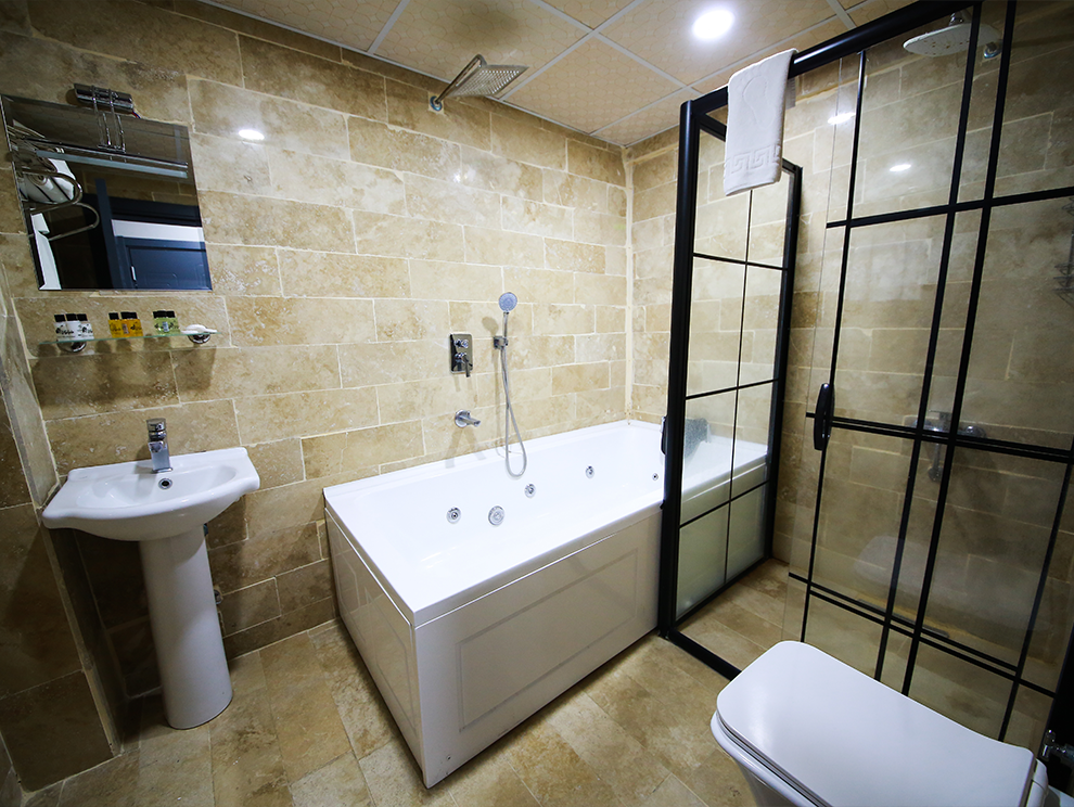 Odada yer alan jakuzi banyosu, günün stresini atmanıza ve tamamen rahatlamanıza olanak tanır.